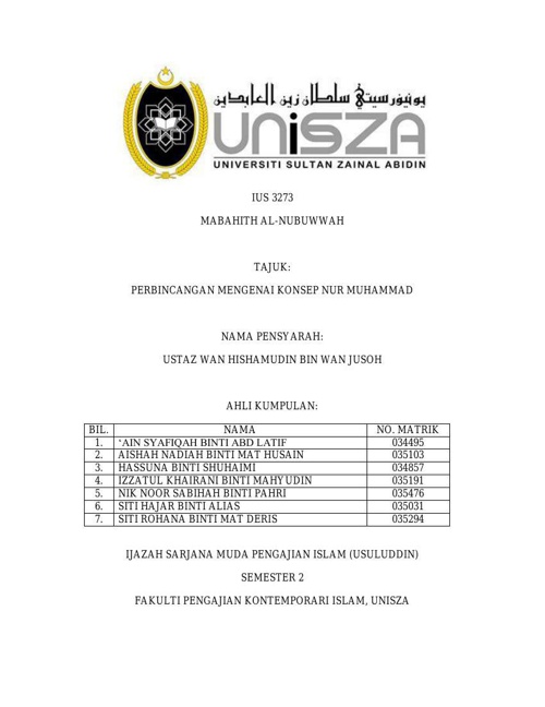Proposal Persepsi Mahasiswa Pengajian Islam Di UniSZA Mengenai Kejadiu2026