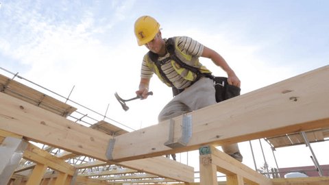 carpenter building timber frame house Stock Footage Video (100 ![]()